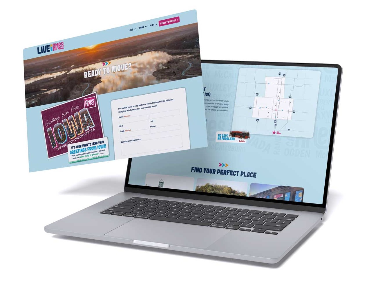 Project Brief: Live in Ames is a vibrant new initiative from the Ames Regional Economic Alliance (AREA), designed to showcase the exceptional quality of life in Ames and the surrounding communities. As a brand-new platform, Live in Ames needed a website that would inspire individuals and families to live, work, and play in the region. The goal was to create an engaging, welcoming, and visually dynamic online presence that celebrates the area’s unique blend of career opportunities, cultural attractions, outdoor recreation, and strong community spirit.